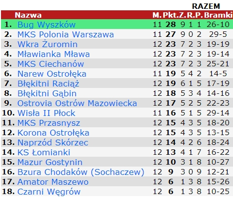 Dzięki wygranej z MKS-em Przasnysz nasz zespół awansował w IV-ligowej tabeli na 9 miejsce.
