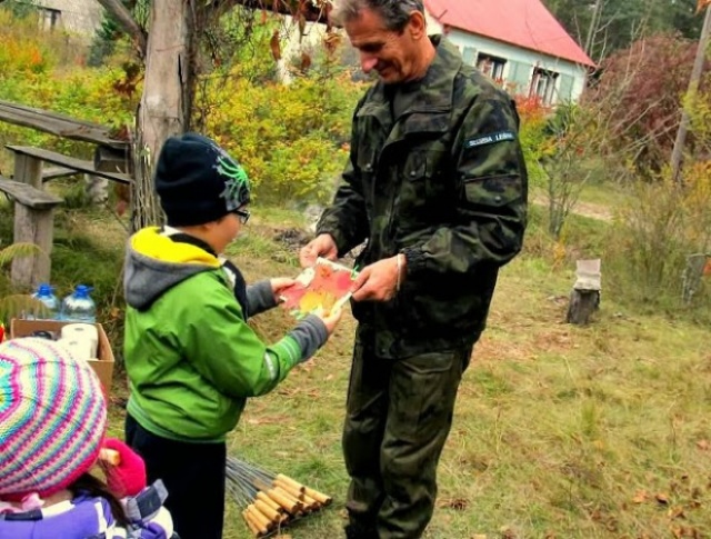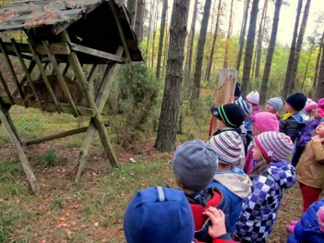 Uwagę dzieci przykuły również mrowiska. Z zainteresowaniem obserwowały one mrówki przy ich pracy. Po spacerze było ognisko z kiełbaskami i frajda pobiegania po pięknej leśnej łące. Na koniec wszyscy głośno wyrazili swoje podziękowanie panu leśniczemu, który otrzymał od dzieci laurkę.