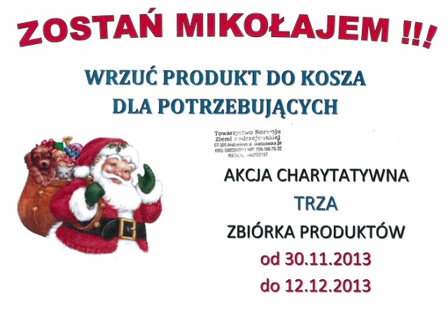 Do udziału w akcji zapraszamy wszystkich mieszkańców gminy. Z zebranych produktów zostaną zrobione paczki, które trafią do rodzin najbardziej potrzebujących z terenu gminy Andrzejewo.