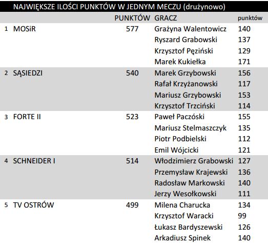 Najlepszym zawodnikiem okazał się Grzybowski Marek, który uzyskał 1218 punktów. II miejsce zajął Grzybowski Mariusz, zdobywając 1160 pkt. - obaj Panowie są zawodnikami drużyny Sąsiadów. Brąz należy do Bardyszewskiego Łukasza z TV Ostrów z 1147 punktami na koncie.