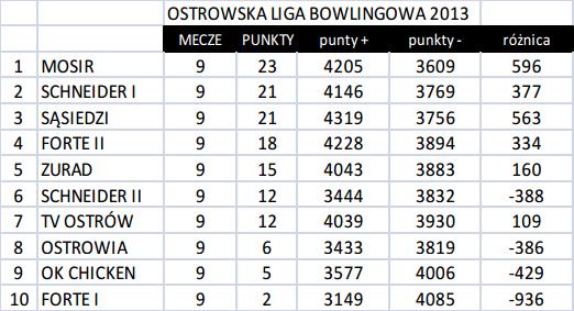Wyniki IX kolejki przedstawiają się następująco: