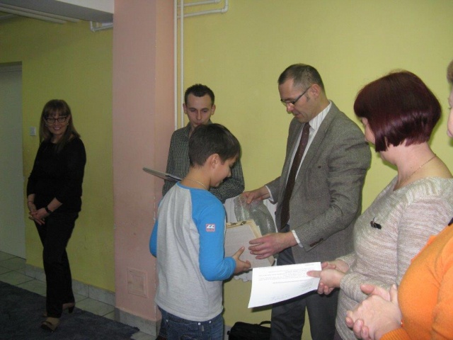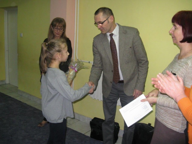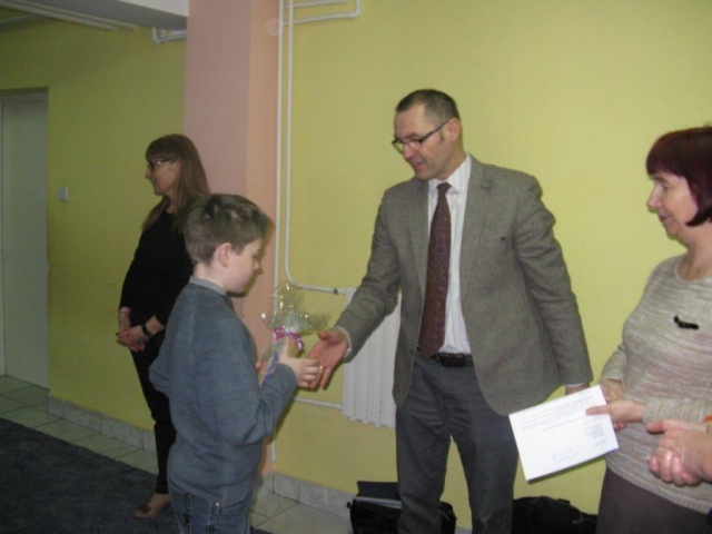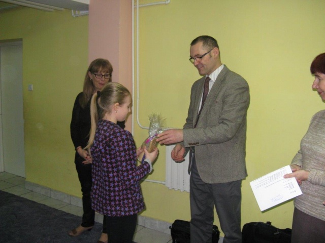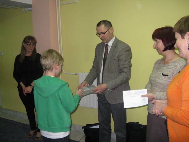 Miłym akcentem tego dnia była wizyta w szkole przedstawiciela firmy Duon p. Przemysława Janowicza, który osobiście podziękował uczestnikom konkursu za udział i wręczył zwycięzcom nagrody rzeczowe w obecności Dyrekcji Szkoły - p. Mieczysławy Porucznik i p. Zofii Grzymkowskiej oraz dyrektor Zespołu Obsługi Szkół i Placówek Oświatowych p. Danuty Włodarczyk a także nauczycieli i społeczności uczniowskiej.