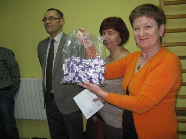 Przedstawiciel firmy Duon oprócz nagród przyznał szkole zestaw prezentowy w postaci artykułów papierniczych i plastycznych, a także kosz słodyczy.