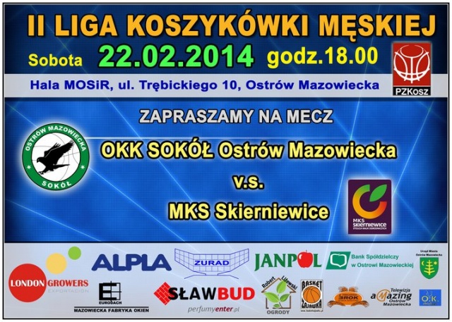 OKK Sokół - MKS Skierniewice --- > 22 lutego, godz. 18.00, hala MOSiR przy ul. Trębickiego
