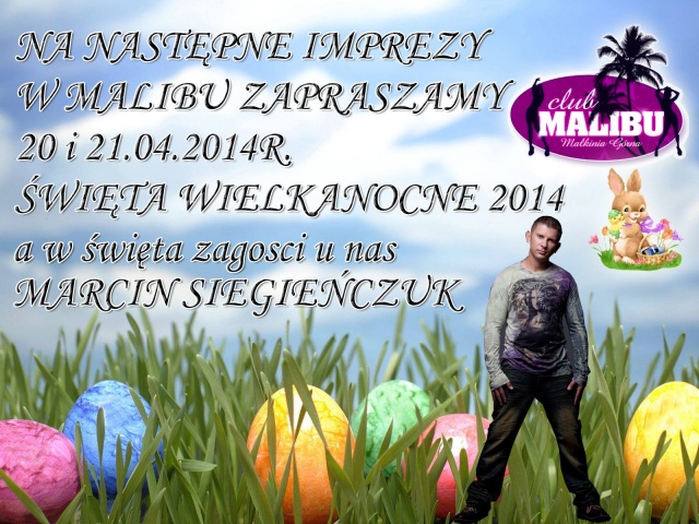 Sobotnie ostatki z zespołem Masters w klubie Malibu kończyły trwający cykl imprez pod hasłem Karnawał 2014. Kolejna najbliższa impreza już za 7 tygodni, a więc w niedzielną kwietniową noc 20-go kwietnia, w którą wypada pierwszy dzień świąt wielkanocnych i na której wystąpi dobrze znany były lider zespołu Toples - Marcin Siegieńczuk! Najświeższe info odnośnie tego i kolejnych wydarzeń znajdziecie już niebawem w naszym dziale Imprezy.