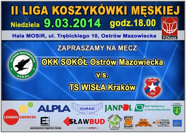 OKK Sokół - TS Wisła Kraków ---> 9 marca, godz. 18.00, hala MOSiR przy ul. Trębickiego