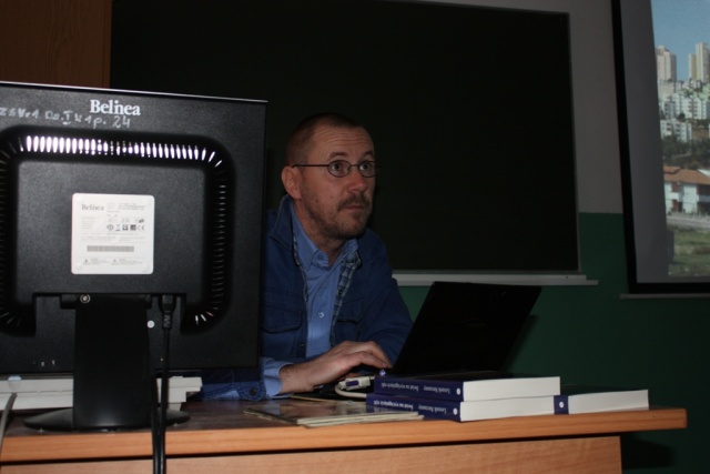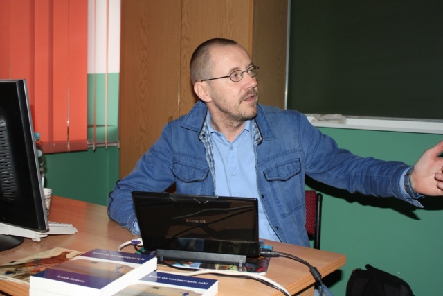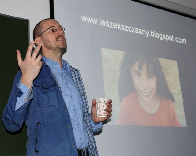 Uczniom klas dziennikarskich opowiedział o życiu podróżnika i fotografika oraz reportażysty. Pokazał cykl slajdów/zdjęć reportażowych "PIERWSZY KROK DO ORIENTU", które jest barwnym zapisem penetrowania północnych i centralnych regionów Turcji. Jest to portret wyjątkowego kraju pomiędzy Wschodem a Zachodem. Oprócz różnorodnych miejsc (np. słone jezioro, XIX-wieczna drewniana zabudowa ottomańska, nieznane Góry Sza-re, fantastyczna Kapadocja, dzikie wybrzeże Morza Czarnego) autor, zauroczony Turkami, pokazuje przede wszystkim rytm ich codziennego życia: od 12-milionowego Stambułu do zapomnianej wsi.