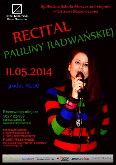 Recital Pauliny Radwańskiej organizuje ostrowska Społeczna Szkoła Muzyczna I stopnia w ramach nowego cyklu ogólnodostępnych koncertów p.t. "Rozśpiewana Ostrów". Głównym celem tej nowej inicjatywy kulturalnej w naszym mieście będzie zaprezentowanie jak najszerszemu gronu słuchaczy dorobku artystycznego piosenkarzy związanych z Ostrowią Mazowiecką.
