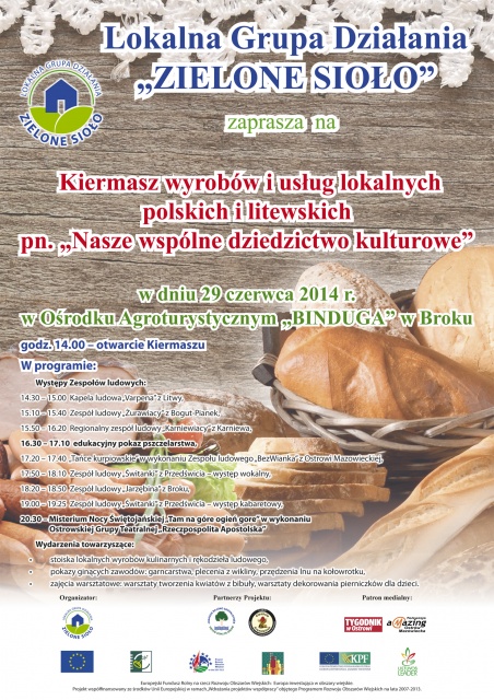Podczas imprezy spotkają się artyści ludowi, rzemieślnicy, rolnicy, rękodzielnicy oraz właściciele gospodarstw agroturystycznych z obszaru działania naszej LGD, LGD "Ciuchcia Krasińskich" oraz LGD z Litwy. Zaprezentują mieszkańcom naszego regionu i turystom wytwory swojej pracy - wyroby i usługi. Odwiedzający kiermasz będą mieli okazję skosztować lokalnych produktów kulinarnych, zapoznać się z ofertą lokalnych twórców ludowych, wytwórców żywności ekologicznej.