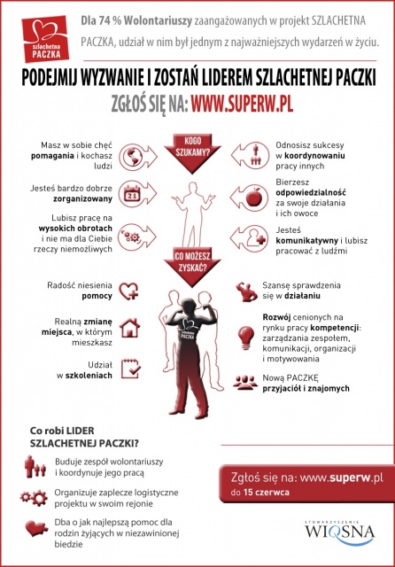 Aby zostać liderem SZLACHETNEJ PACZKI wystarczy wejść na www.superw.pl i uzupełnić formularz. Na zgłoszenia czekamy do 30 czerwca.