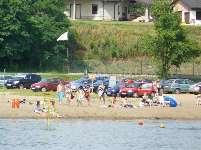 Okres wakacyjny i piękna pogoda sprzyja wszystkim chcącym odpocząć nad wodą, to też frekwencja na plaży podczas minionego miesiąca i obecnie jest bardzo duża. Amatorzy czynnego wypoczynku, poza gorącą plażą i czystą wodą mogą skorzystać z boiska do siatkówki plażowej.
