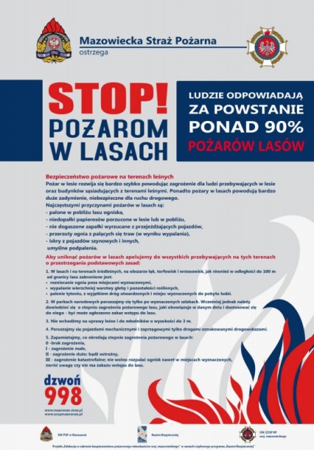 Mazowiecka Straż Pożarna ostrzega mieszkańców naszego województwa. To właśnie ludzie odpowiadają za powstanie ponad 90% pożarów lasów.
