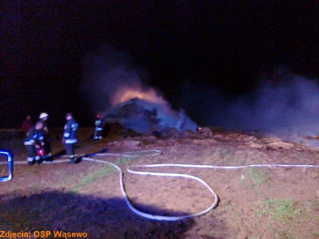 Działania polegały na podaniu prądów wody w natarciu na palącą się stertę oraz dowożeniu wody. W akcji gaszenia brały udział: zastęp OSP Wąsewo, OSP Brudki Stare oraz 2 zastępy JRG Ostrów Mazowiecka. Dogaszanie trwało prawie do godz. 6 rano. Spłonęło około 450 bel słomy.