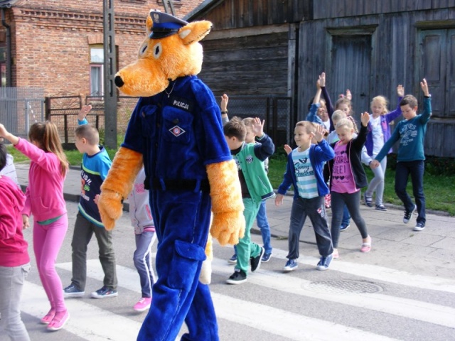 Na pamiątkę spotkania z policjantami wszystkie pierwszaki otrzymały odblaski i dyplomy. Niespodzianką dla wszystkich uczniów były odwiedziny liska - policyjnej maskotki.
