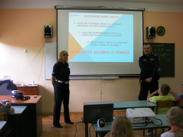 Policjanci przypomnieli najmłodszym podstawowe zasady bezpieczeństwa podczas poruszania się po drogach, zasady ograniczonego zaufania w stosunku do obcych. Przekazali również dzieciom jakie niebezpieczeństwa mogą na nich czyhać na drodze, w domu podczas nieobecności rodziców oraz jak zachować się podczas ataku psa. Uczniowie przypomnieli sobie zasady przechodzenia przez jezdnię, podróżowania samochodem oraz jazdy rowerem.