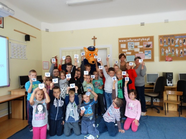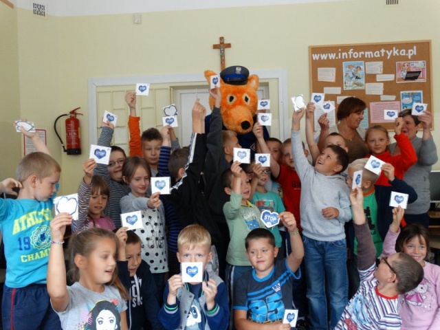 Ostrowscy funkcjonariusze Wydziału Ruchu Drogowego wspólnie z Zespołem ds. Nieletnich rozdawali uczniom Szkoły Podstawowej im. Marii Konopnickiej w Starym Lubiejewie niebieskie serca, które mają przypominać kierującym o bezpiecznym poruszaniu się po drodze. Dzieci mają przekazać serca swoim rodzicom.