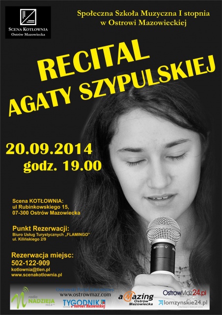 Recital Agaty Szypulskiej rozpoczyna uroczyste obchody 10-lecia ostrowskiej Społecznej Szkoły Muzycznej, na które złożą się recitale i koncerty w całym roku szkolnym 2014/2015. Oprócz uczniów szkoły muzycznej wystąpią również zaproszeni goście, absolwenci szkoły, a także wybitni artyści scen krajowych i zagranicznych.