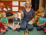 Zajęcia są bezpłatne i rozpoczęły się w październiku. Prowadzi je Magdalena Szewczyk - trener szachowy. Spotkania z dziećmi odbywają się raz w tygodniu w każdej grupie wiekowej: 15 minut grupy 3 i 4-latków, 30 minut grupy 5 i 6-latków. Są prowadzone dla wszystkich dzieci. Magda Szewczyk w ciekawy sposób, poprzez zabawę i ćwiczenia utrwalające, przekazuje przedszkolakom zasady tej gry, a nie są one łatwe. Jednak postępy można zauważyć z zajęcia na zajęcie. Dzieci z zainteresowaniem i zadowoleniem uczestniczą w proponowanych działaniach, co można zauważyć na załączonych zdjęciach.