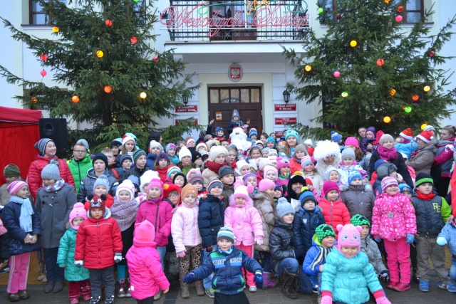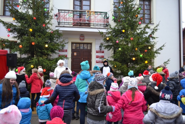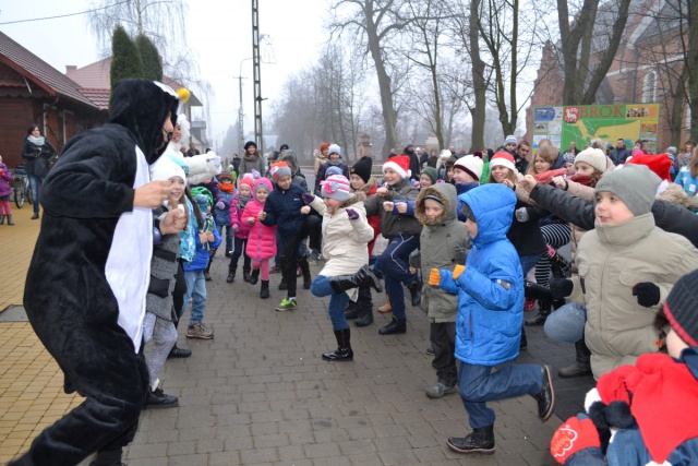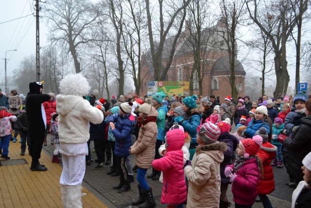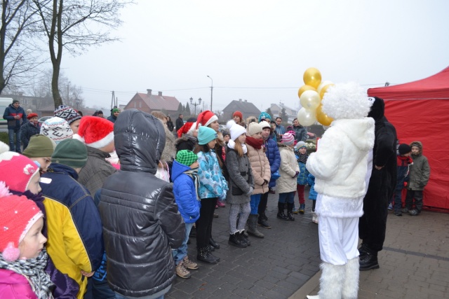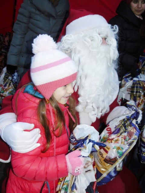 Wreszcie przy gorącej owacji i uciesze najmłodszych wkroczył Mikołaj, przynosząc dzieciom prezenty. Prezentów było tak dużo, iż w ich rozdawaniu Mikołajowi pomagali organizatorzy.