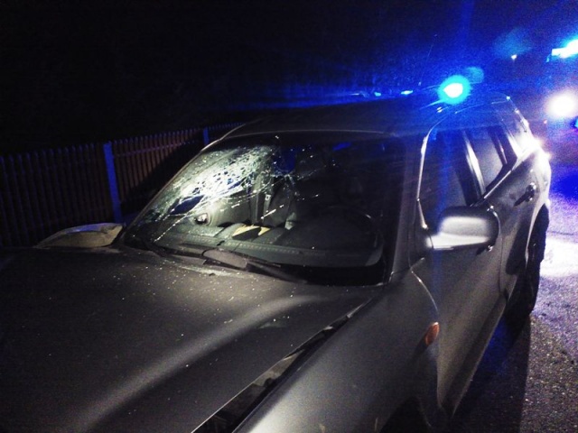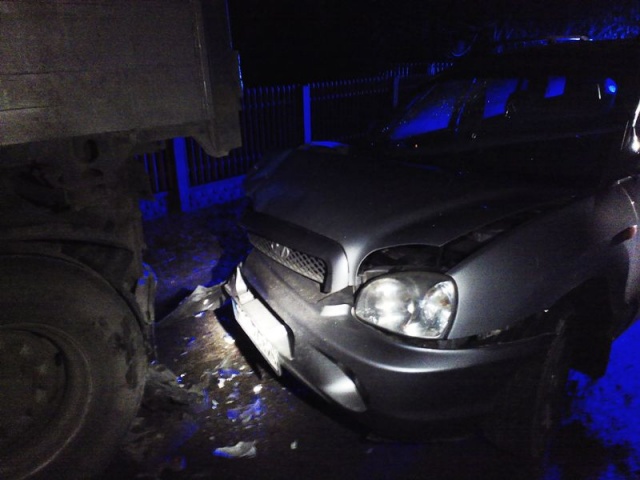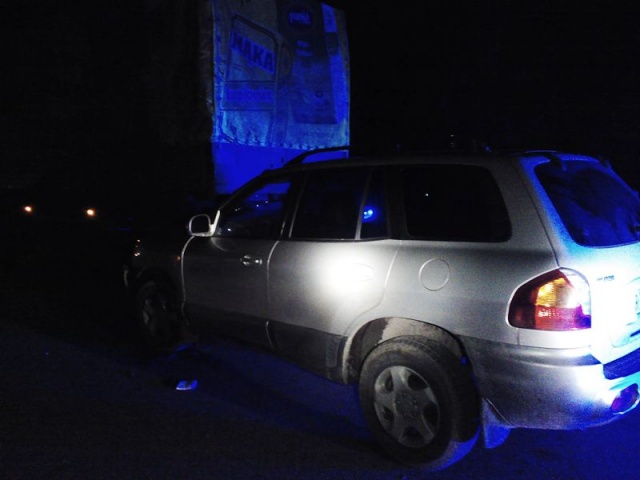 Z nieustalonych na chwilę obecną przyczyn kierowca samochodu osobowego marki HYUNDAI Santa Fe stracił panowanie nad pojazdem i uderzył w tył stojącego na poboczu samochodu ciężarowego marki SCANIA 124L.
