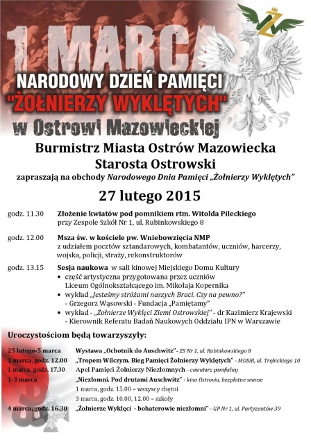 - wykład - "Żołnierze Wyklęci Ziemi Ostrowskiej" - dr Kazimierz Krajewski - Kierownik Referatu Badań Naukowych Oddziału IPN w Warszawie