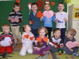 Na kartkach walentynkowych wykonanych przez dzieci znalazły się rymowane życzenia: "Przedszkolaczki małe razem z panią Hanią, wszystkim których kochają życzenia składają. Kuchareczki, zawsze uśmiechnięte 3-latki kochają, za smaczne posiłki serduszka im dają. Pani intendentce też serduszko damy, za smaczny jadłospis bardzo ją kochamy. Serduszko dostanie pan Wojtuś kochany, przez wszystkie 3-latki bardzo dobrze znany. Dla pani Dyrektor są serduszka trzy, kochamy ją bardzo Pani oraz My. W Walentynki wszystkim wokół dziękujemy, Kochamy Was mocno i kochać będziemy.". Wierszyk ułożyła wychowawczyni grupy, Hanna Smakosz.