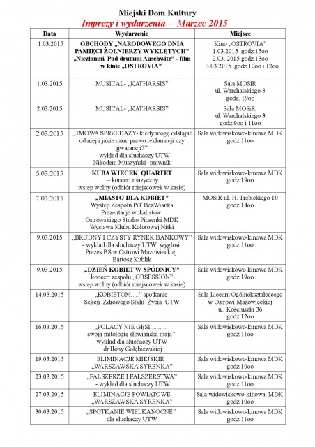 Na początku marca mieszkańcy Ostrowi będą mieli również niezwykłą możliwość obejrzeć musical profilaktyczny "Katharsis" w reżyserii Piotra Trentowskiego. Z kolei 5 marca w ostrowskim kinie wystąpi zespół Kuba Więcek Quartet. Wstęp na koncert jest wolny.