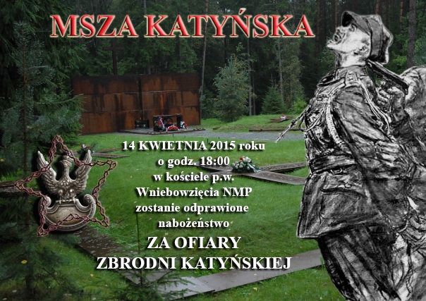 14 kwietnia o godzinie 18:00 w kościele p.w. Wniebowzięcia NMP odprawione zostanie nabożeństwo za ofiary Katyńskiej Zbrodni.