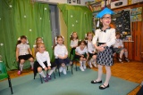 Uroczystość z okazji Dnia Mamy i Taty w grupie III (5-latki) odbyła się 27 maja. W godzinach popołudniowych sala grupowa została zaadaptowana do zorganizowania "Akademii Małych Studentów". Na wykład zostali zaproszeni wyjątkowi goście - Rodzice, zaś spotkanie poprowadzili wykładowcy - ich dzieci. W roli Pani Profesor wystąpiła Oliwia Drabio. Poprzez prezentację wierszy, piosenek oraz tańca rodzice usłyszeli słowa miłości i wdzięczności za wkładany trud w codzienne wychowanie swoich pociech. Dopełnieniem było wręczenie przez dzieci samodzielnie wykonanych upominków - mamie oryginalnej solnej biżuterii, tacie breloczka do kluczyka samochodu - imitacji sygnalizatora świetlnego. Rodzice, którzy bardzo się wzruszyli, nagrodzili swoje pociechy brawami.
