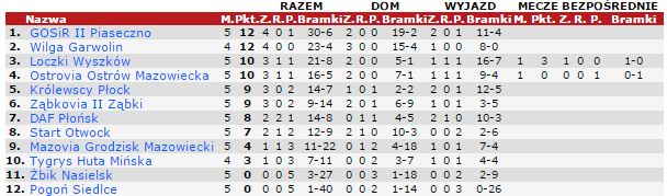 Po niedzielnym meczu piłkarki KS Ostrovii znalazły się na czwartym miejscu w tabeli. Zwycięska drużyna z Wyszkowa zajmuje miejsce trzecie. Liderem tabeli jest drużyna GOSiRKi II Piaseczno, zaś wiceliderem - Wilga Garwolin, która do tej pory rozegrała dopiero 4 mecze.