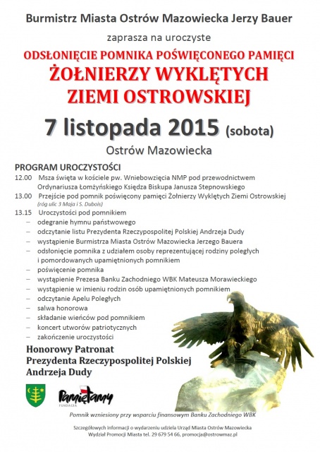 13.00 Przejście pod pomnik poświęcony pamięci Żołnierzy Wyklętych Ziemi Ostrowskiej (róg ulic 3 Maja i S. Dubois)