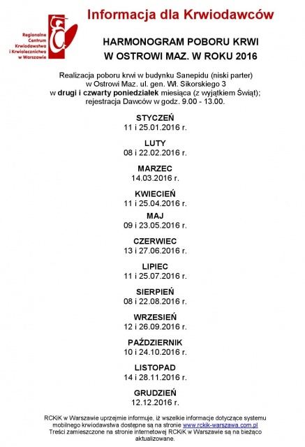 Rejestracja dawców odbywać się będzie w godzinach 9.00-13.00.
