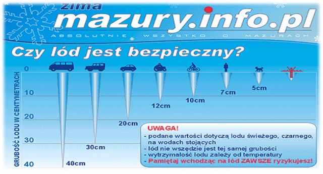 - Przed wejściem na lód należy sprawdzić jego grubość (poniżej wykres grubości lodu).