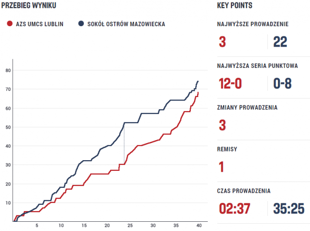 AZS UMCS Lublin - SOKÓŁ Ostrów Mazowiecka 68:74