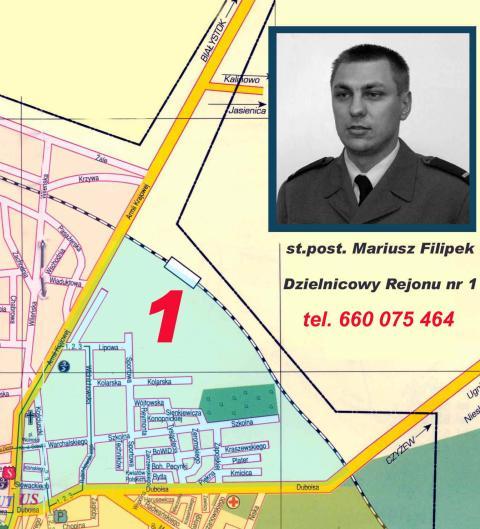 st. post. Mariusz Filipek - dzielnicowy Rejonu nr 1 (teren między ul. Armii Krajowej, a Duboisa)