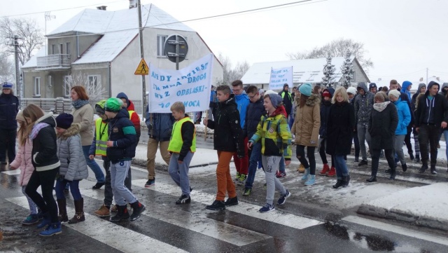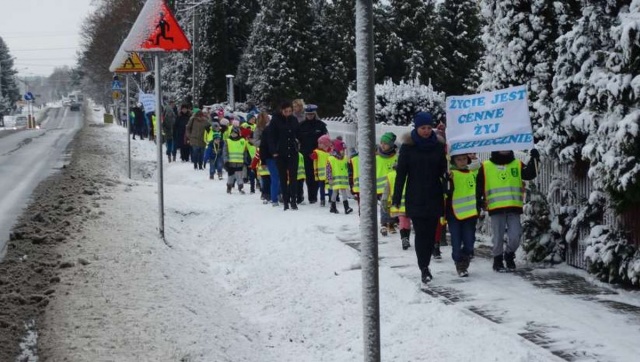 Dzieci i młodzież niosąc transparenty m.in "Życie jest cenne, żyj bezpiecznie", "Kiedy idziesz ciemną drogą, weź odblaski bo pomogą" i " Bezpieczne są dzieci gdy odblask na nich świeci" chciały przypomnieć o znaczeniu odblasków dla bezpieczeństwa pieszych. Ponadto happening miał za zadanie zwrócić uwagę kierującym aby zachowywali szczególną ostrożność w pobliżu przejść dla pieszych. W happeningu wzięło udział około 100 osób. Policjantki z drogówki zapewniły uczestnikom bezpieczne przejście.