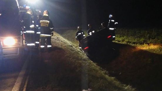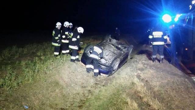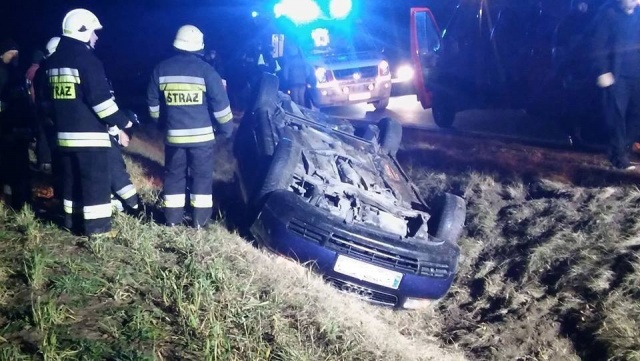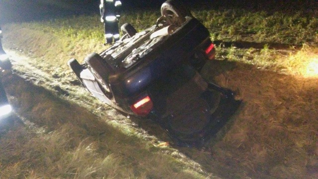 Kierujący samochodem osobowym z nieznanych przyczyn zakończył swoją jazdę dachując w przydrożnym rowie.