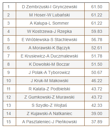 Oficjalne wyniki turnieju: