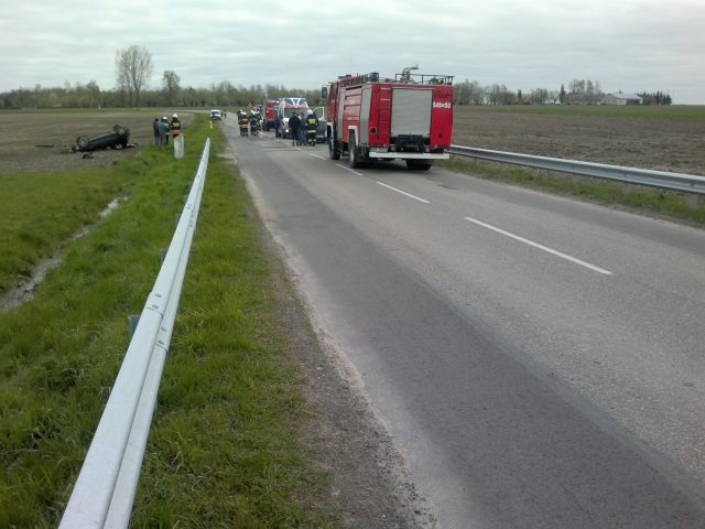 Po dojechaniu na miejsce zdarzenia na przydrożnym polu strażacy zastali leżący na dachu samochód osobowy marki Peugeot. Osoba, która podróżowała pojazdem opuściła go o własnych siłach.