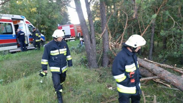 Po dojechaniu na miejscie pierwszego zastępu działania strażaków polegały na zabezpieczeniu miejsca zdarzenia, odłączeniu akumulatora w pojeździe, udzieleniu pierwszej pomocy dwóm osobom poszkodowanym, które opuściły pojazd o własnych siłach, a nastepnie przekazaniu osób poszkodowanych Zespołowi Ratownictwa Medycznego. Po przebadaniu poszkodowani zostali przewiezieni do szpitala.