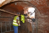 Trwają prace związane z wykonaniem izolacji przeciwwilgociowych oraz termicznych, zewnętrznych ścian piwnic. Zakończone zostały prace rozbiórkowe ścian wewnętrznych, posadzek wraz z warstwami podkładowymi (lastryka, szlichty cementowe).