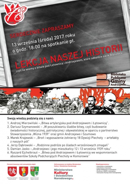 18:00 - "Lekcja naszej historii", czyli ile wiemy o bitwie pod Łętownicą i Andrzejewem - spotkanie pasjonatów historii - Biblioteka Publiczna Gminy Andrzejewo