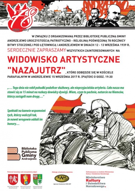 19:30 - widowisko artystyczne "Nazajutrz" - kościół parafialny w Andrzejewie
