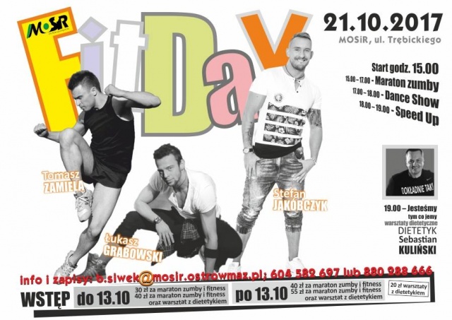 40 zł za maraton zumby i fitness oraz warsztat z dietetykiem, jeśli wpisowe zostanie wykupione do 13 października 2017 r.