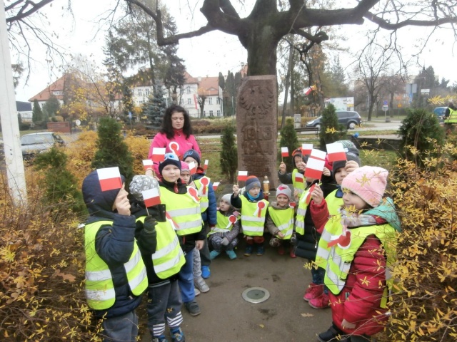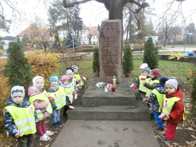 Aby rozbudzić u dzieci uczucie przynależności do narodu dzieci 3-letnie z oddziału przy ul. Grota Roweckiego oraz dzieci 6-letnie z oddziału pięciogodzinnego 9 listopada zapaliły znicz pod " Dębem Wolności".