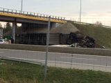 - Z nieustalonych dotąd przyczyn kierujący ciężarówką Volvo z naczepą 33-letni mieszkaniec powiatu legionowskiego jadąc od Warszawy w kierunku Białegostoku stracił panowanie na autem w wyniku czego pojazd wpadł do rowu przewracając się i uszkadzając bramki wiatol. Kierujący został przewieziony do szpitala - informuje rzecznik ostrowskiej policji, st.sierż. Marzena Laczkowska. - W wyniku uszkodzenia bramka przewróciła się na jadące w tym samym kierunku Volvo z naczepą kierowaną przez 33-letniego obywatela Białorusi. W tym samym czasie kolejny uczestnik zdarzenia 58-letni obywatel Słowacji jadąc Volvo z naczepą i widząc zdarzenie rozpoczął hamowanie zatrzymując się przed konstrukcją bramki wówczas został uderzony w tył przez ciężarówkę Volvo kierowaną przez 35-letniego mieszkańca powiatu ostrowskiego. Wówczas bramka przewróciła się w poprzek drogi S-8 blokując ruch w obydwu kierunkach uszkadzając ciężarówkę z naczepą Renault kierowaną przez 54-letniego mieszkańca Białegostoku który jechał w stronę Warszawy. W zdarzeniu brał jeszcze udział samochód osobowy marki Honda którego kierujący oddalił się z miejsca pozostawiając auto na poboczu. Dalsze czynności w sprawie prowadzą ostrowscy policjanci- dodaje.