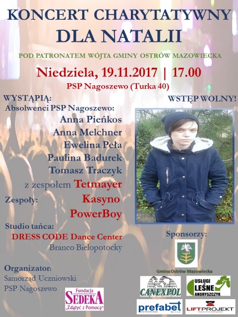 19 listopada o godzinie 17:00 w Publicznej Szkole Podstawowej w Nagoszewie podczas koncertu charytatywnego zostanie przeprowadzona zbiórka publiczna organizowana przez Fundację Sedeka "Zdążyć z Pomocą".