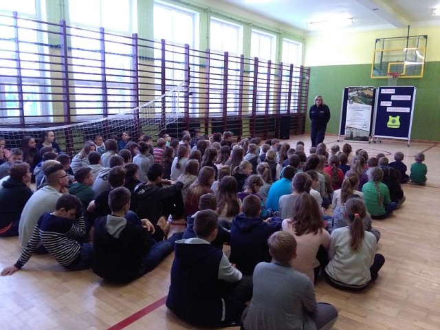 Naczelnik przypomniała o zasadach bezpieczeństwa w ruchu drogowym rowerzystów, w tym obowiązkowym wyposażeniu rowerów. Ponadto rozmawiała z uczniami na temat bezpiecznego poruszania się pieszych po drodze, gdy brakuje chodnika oraz dlaczego ważne jest używanie odblasków.