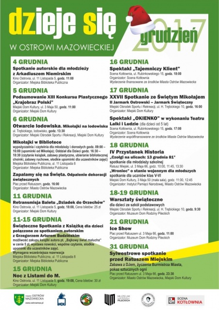 17 grudnia odbędzie się tradycyjne Spotkanie ze Świętym Mikołajem, połączone z Jarmarkiem Świątecznym, a 31 grudnia Sylwestrowe Spotkanie przed Ratuszem Miejskim.