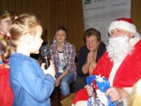 Po zabawach i tańcach przyszedł czas na Św. Mikołaja, który pojawił się z workiem prezentów. Dzieci hucznie go przywitały tańcem w kółku.